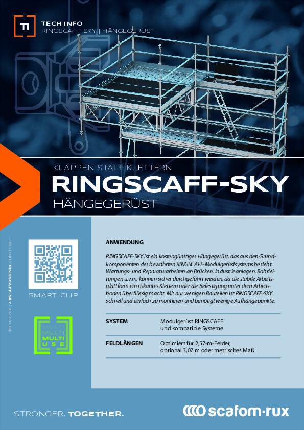 The RINGSCAFF Sky suspended scaffold is particularly suitable for work areas with difficult access.